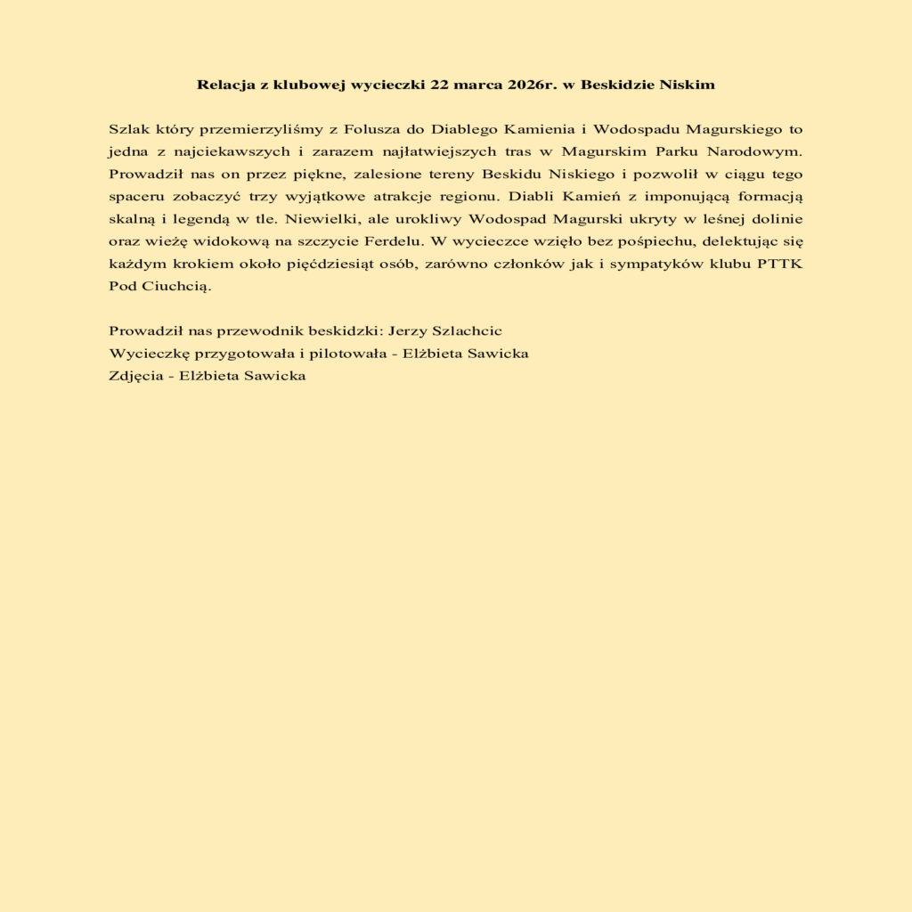 23 marca, 2026 przez admin3607 Relacja z rajdu Beskid Niski 22 marca 2026 r. Poprzedni artykułrajd integracyjny na rozpoczecie sezonu 11 kwietnia 2026 r.
