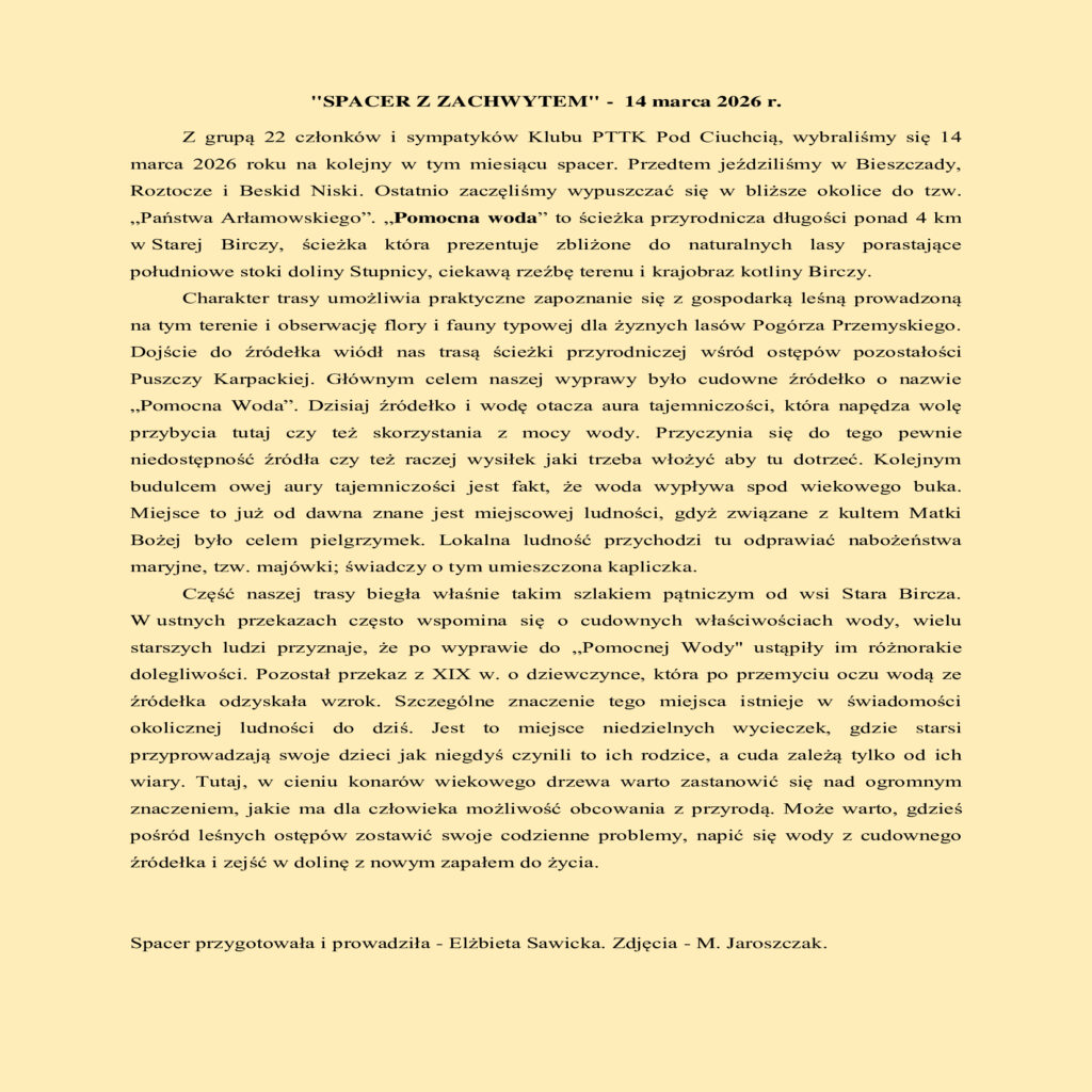 16 marca, 2026 przez admin3607 Spacer z zachwytem 14 marca 2026 r. Poprzedni artykułSPACER Z ZACHWYTEM 14 MARCA 2026 R.